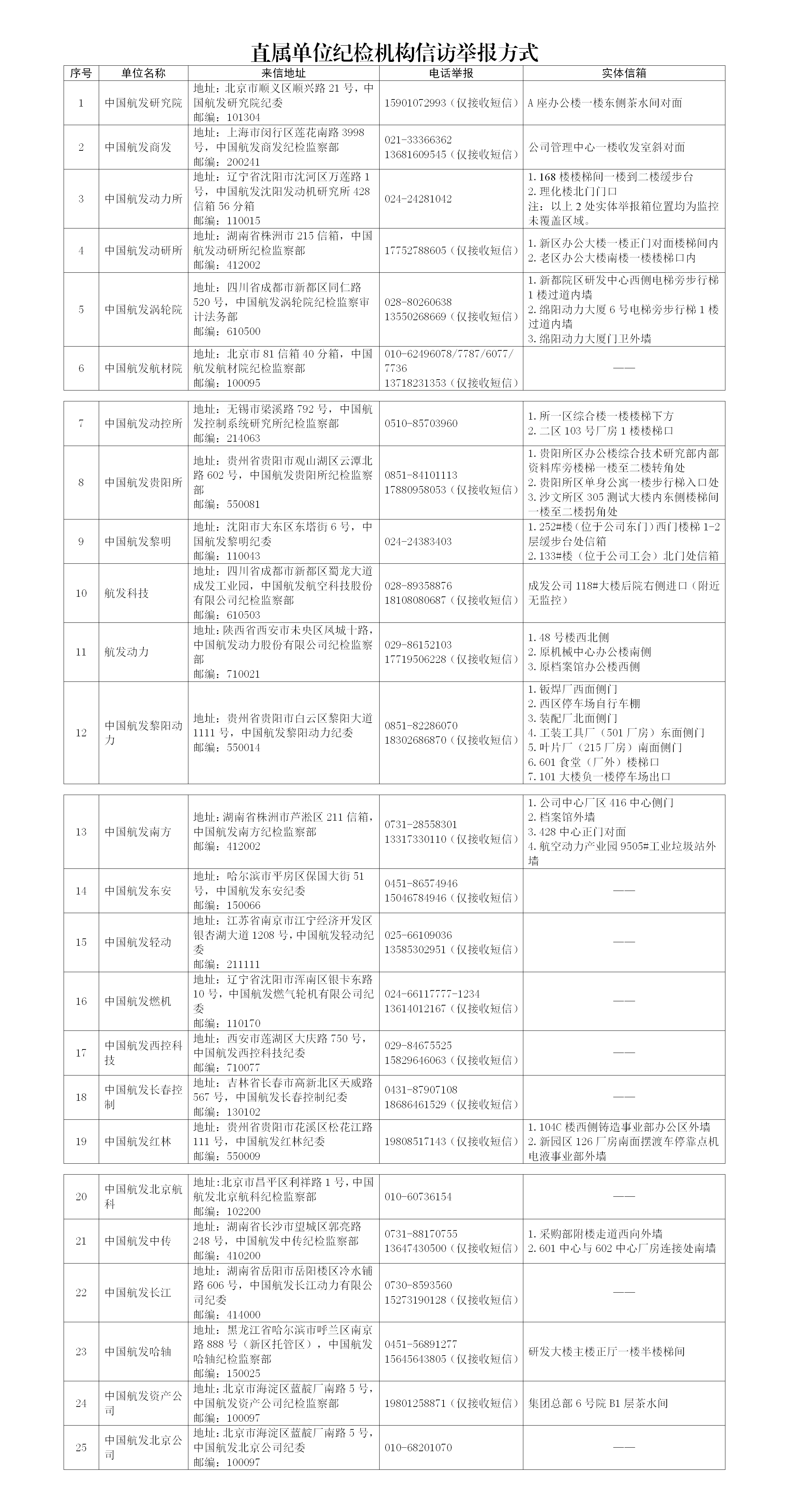 ??來信地址:北京市海淀區(qū)藍靛廠南路5號,駐中國航發(fā)紀(jì)檢監(jiān)察組(郵編:100097)