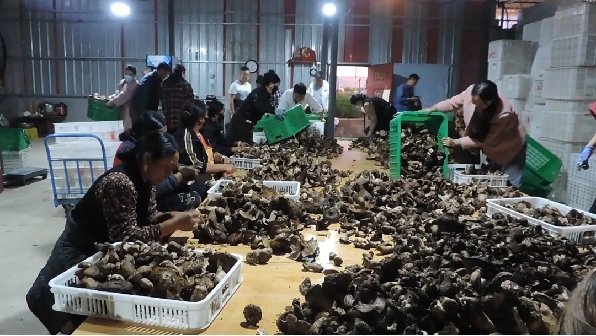 △圖為工作隊組織村民開展虎掌菌揀選分裝