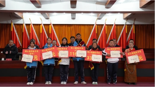 △圖為向爐霍學子頒發(fā)“鑄心強國”勵學獎