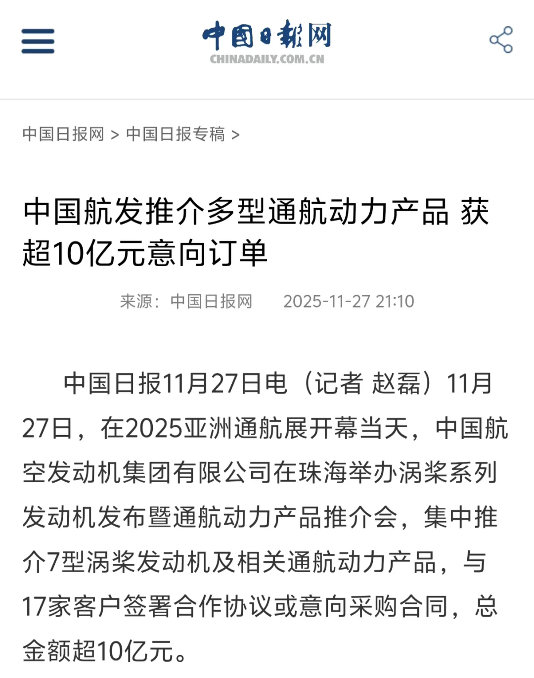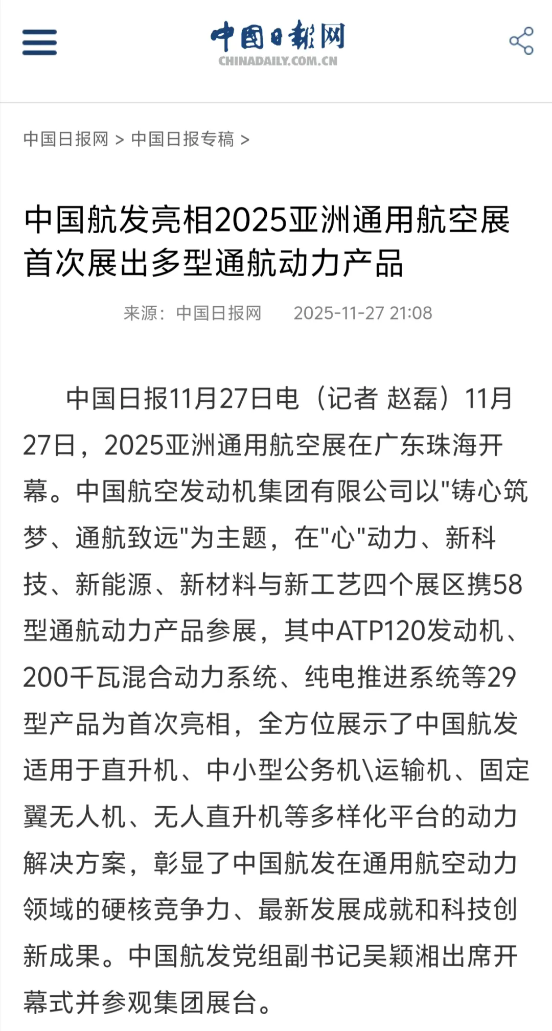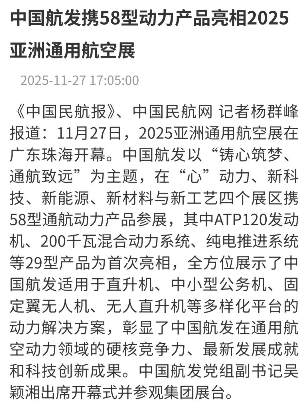 媒體聚焦丨各大媒體廣泛報(bào)道中國(guó)航發(fā)參加2025亞洲通用航空展